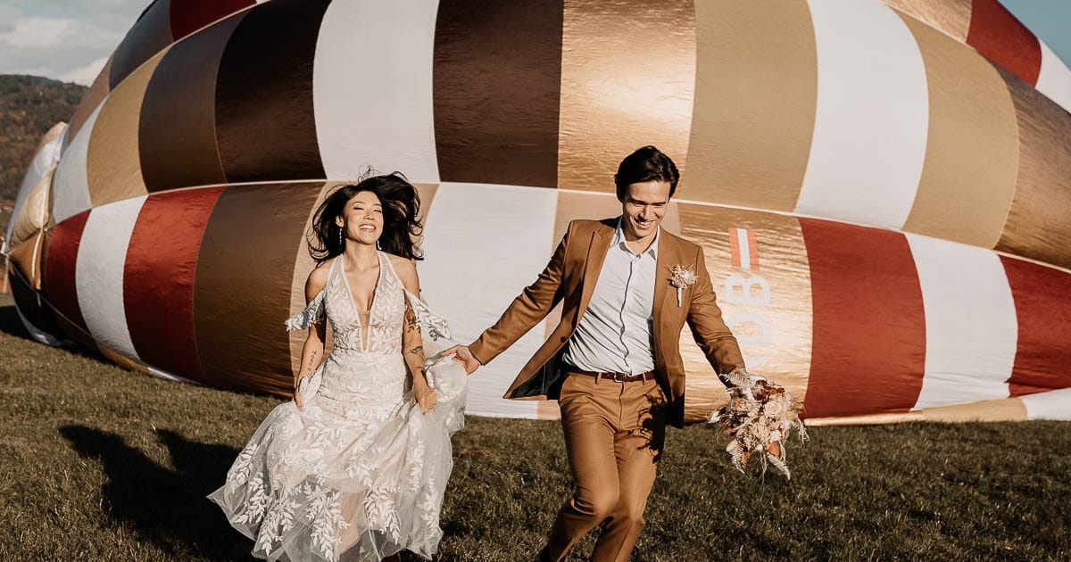 Meine Kollegin, Kristina “Kri” Kircher und ich werden am 12.4.2026 einen exklusiven Fotoworkshop mit einem Heißluftballon anbieten! Nein, wir fliegen fahren nicht damit, sondern der Ballon (übrigens der schönste Österreichs!) dient nur als “Prop” und Backdrop für ein Shooting mit einem Hochzeitspaar. 😊