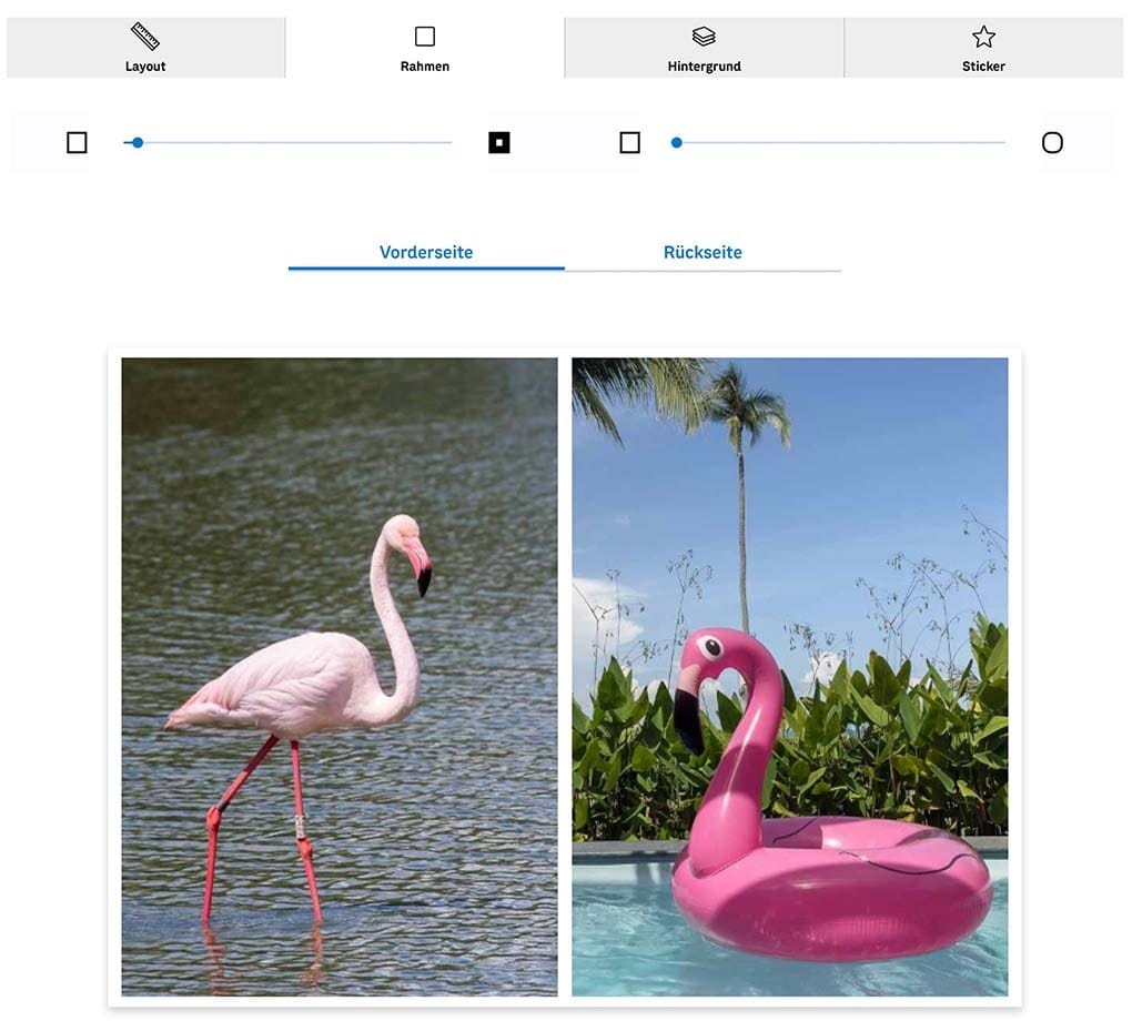 Schicke nicht nur ein Foto, sondern lass dir einen visuellen Gag einfallen. Du könntest z.B. ein Layout mit 2 (oder mehr) Bildern wählen, die Rahmenstärke auf ein Minimum ziehen und dann Fotos wählen, die zusammen als Collage etwas Neues ergeben.